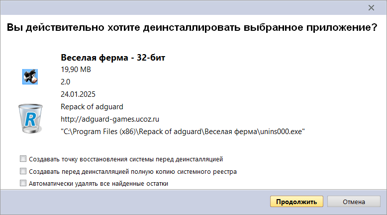 Создавать точку восстановления системы перед деинсталляцией